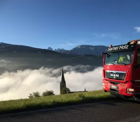 Unsere Lkw-Flotte ist regelmäßig in ganz Südtirol und darüber hinaus unterwegs. Verschiedene Anhänger und Kräne garantieren eine verlässliche, pünktliche Lieferung – vom Rundholz über Schnittholz bis hin zu maschinengerecht kommissionierten Fensterkanteln.